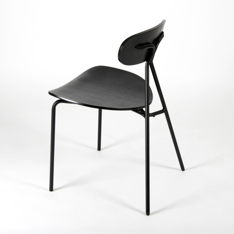 • Lagoa Stacking Chair - Black beech and steel - 3/4 back view