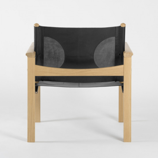 • Peglev Armchair - Black leather - Solid oak - front view