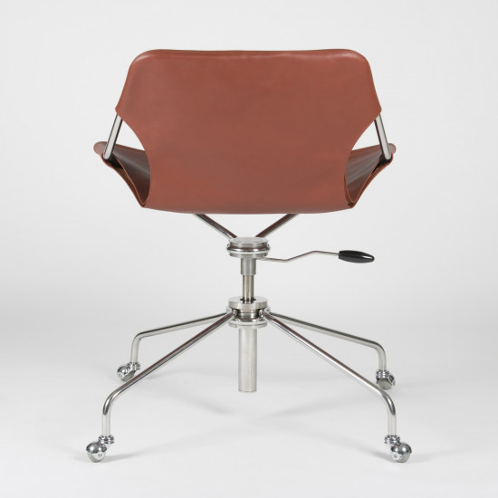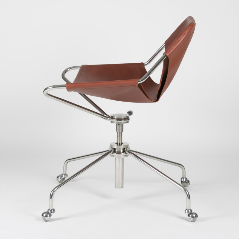 The Paulistano OC leather office chair is a rolling variation of the original Paulo Mendes da Rocha chair. Keeping its mythical and timeless design, it is covered with its full grain leather cover and a steel structure.
