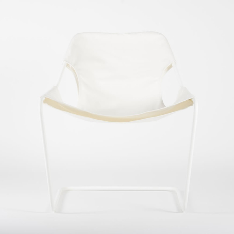 Designed in 1957 by Paulo Mendes da Rocha, the Paulistano armchair was part, for many years, of the living rooms of the Athletic Club of São Paulo. The constructivist concept of the structure, made up from a single bended steel bar, and its cover, made up of leather or cotton, procure to this armchair an esthetical lightness and an incomparable comfort.