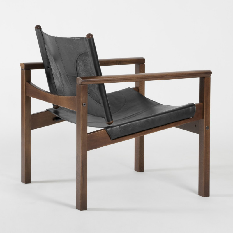 D'une élégance simple et moderne, le fauteuil en cuir et bois massif Peglev est une création du designer Michel Arnoult, l'un des précurseur du mobilier démontable. Iconique, le Peglev est fait de formes et courbures simples en matériaux de haute qualité.
