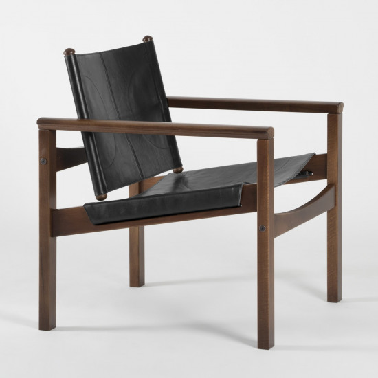 Les pièces de cuir végétal pleine fleur tendues sur une structure de bois massif beau et résistant donnent à ce fauteuil une silhouette iconique et singulière.